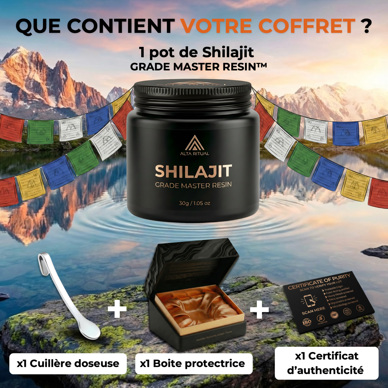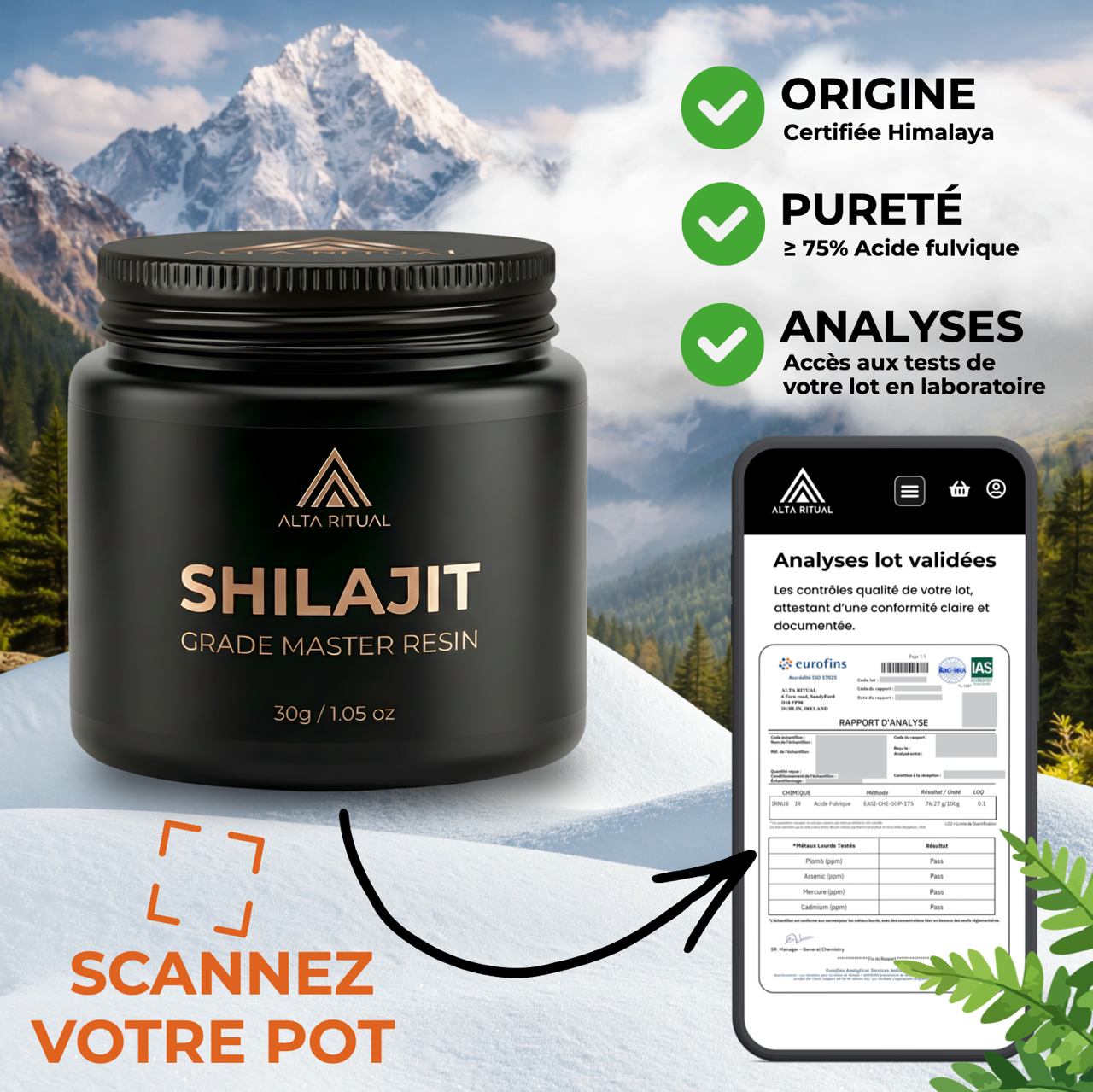 L’objectif est simple : En un scan du QR code sur votre pot, vous vérifiez la qualité et l’authenticité de votre Shilajit, et vous êtes prêt à démarrer votre routine sereinement .