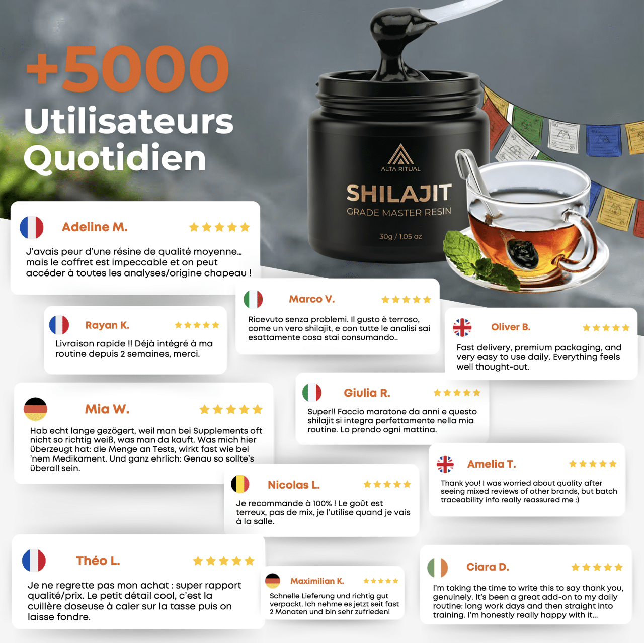 Rejoignez une communauté de plus de 5 000 utilisateurs qui ont intégré le Shilajit GRADE MASTER RESIN™ à leur routine, parce qu’ils préfèrent la preuve aux promesses.